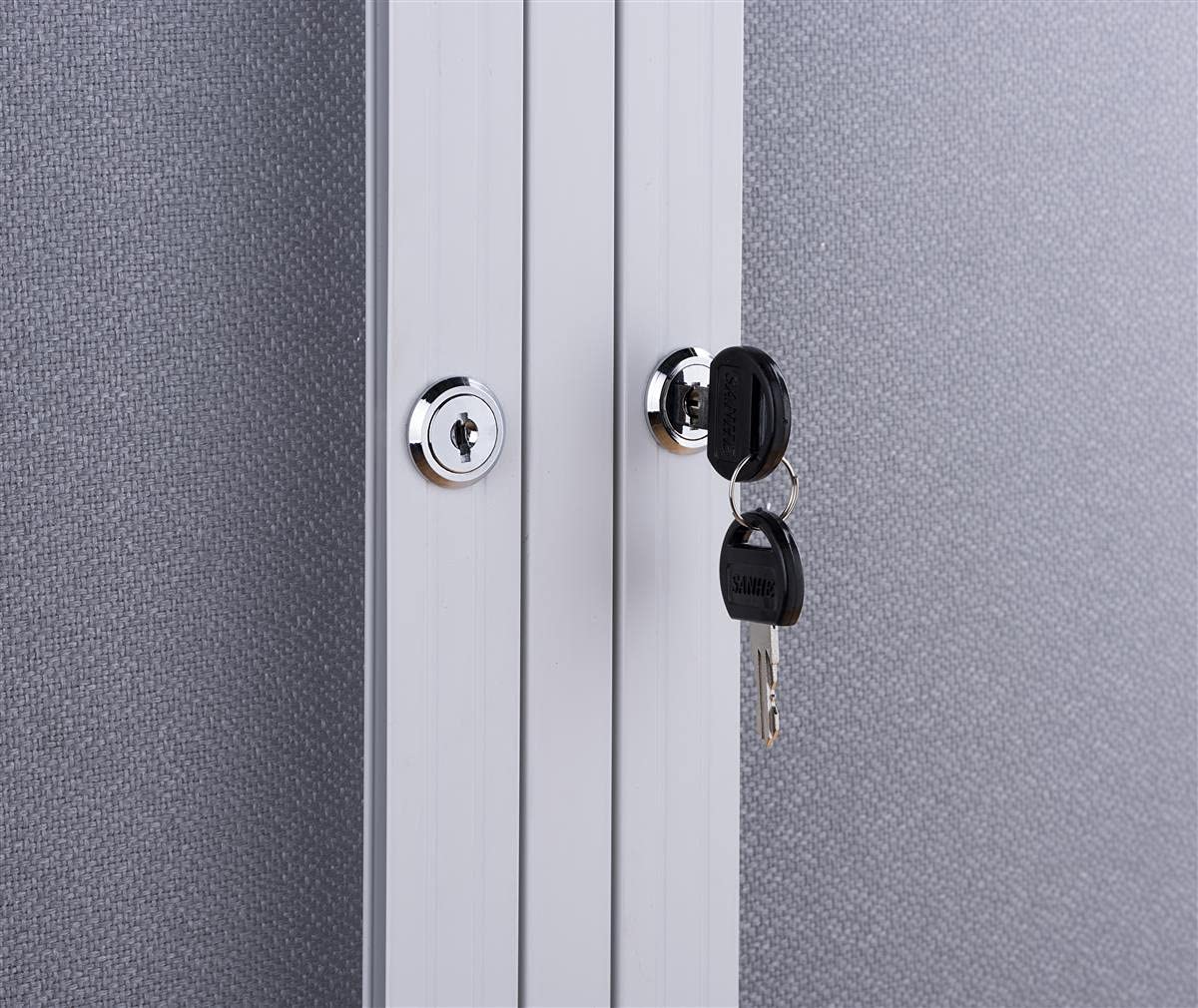 Displays2go 4' x 3' Enclosed Message Board, Sliding Doors, Locking, Gray Fabric - White (FBSW43WHLG)