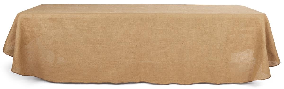 Displays2go Burlap Table Cloth Features Full-Length Design with Rustic Jute Fabric (BTC8FT)