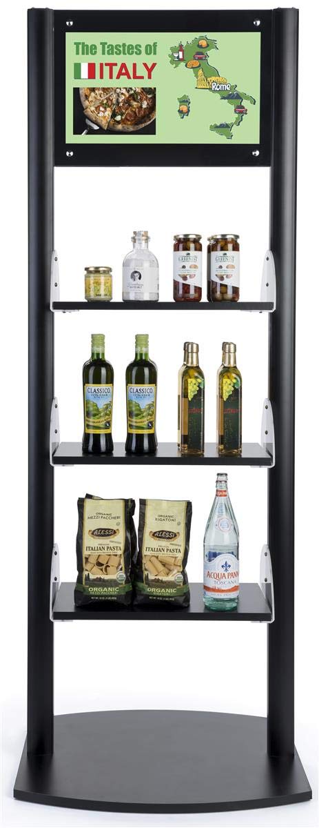 - [Adjustable Multi-Tier Shelving]: Includes three customizable MDF and acrylic shelves that attach to a sturdy aluminum frame, ideal for showcasing products alongside digital content.