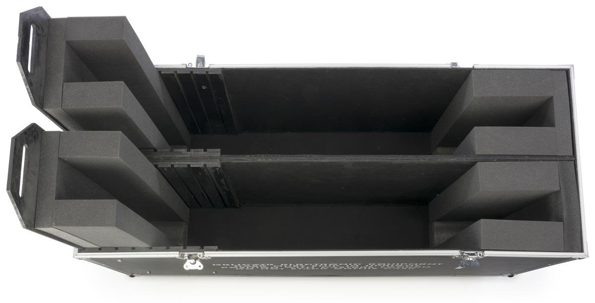Displays2go, Monitor Case with Wheels, Wood Construction, EVA Foam Blocks – Black Finish, Chrome Latches (LCD60CASE2)