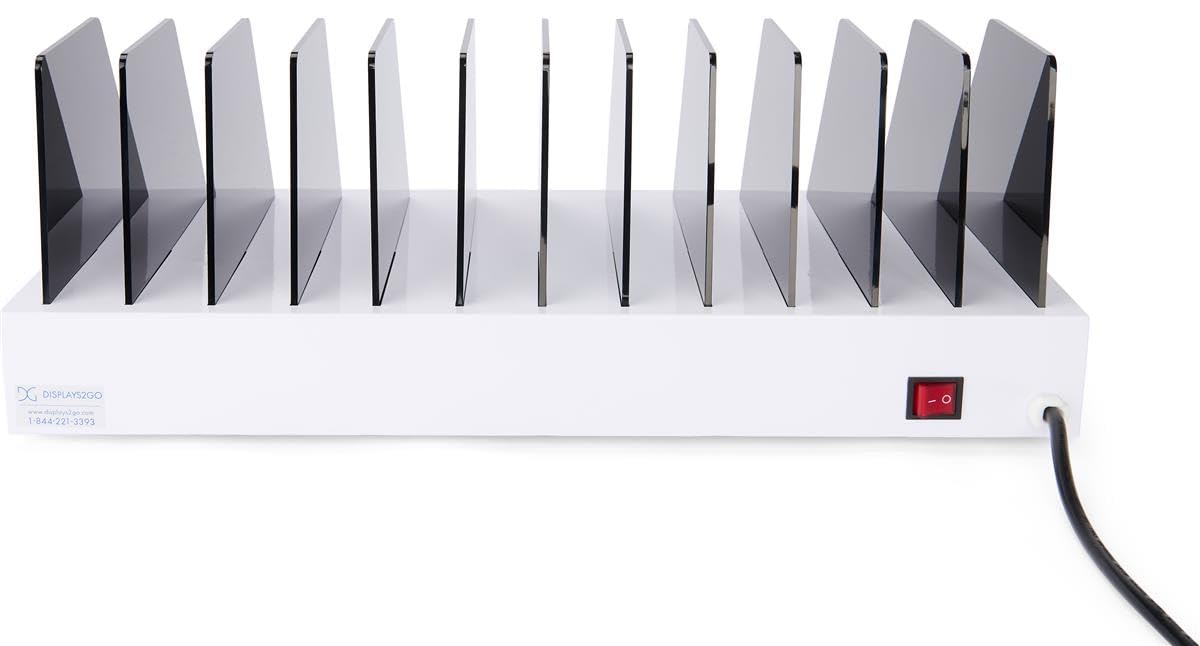 Displays2go Tabletop Charging Station w/Adjustable Dividers 6 AC, 6 USB Outlets- White (TT12HUBXT)